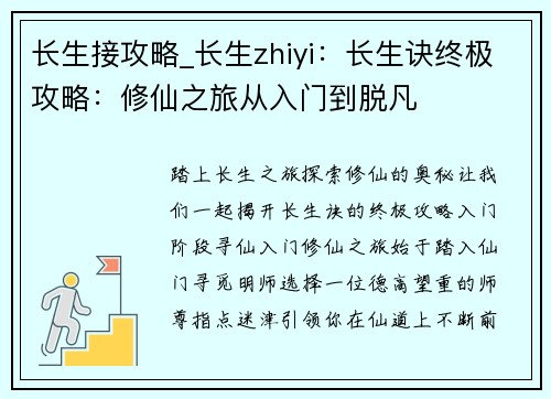 长生接攻略_长生zhiyi:长生诀终极攻略:修仙之旅从入门到脱凡